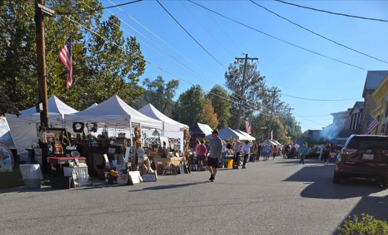 Vendor booths set up all over town. Thousands of visitors come to find treasures and bargains.